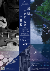 2 042026 【イベント】出張メンテナンス会 in 倉敷のご案内 2026年2月22日(日)~ 23日(月)の2日間、岡山県 倉敷市にて出張メンテナンス会を開催いたします。 混雑が予想されるため、予約制とさせていただきます。お早めにご予約いただきますようご協力のほどよろしくお願いいたします。 ご予約・お問い合わせは、090-9663-3088(坪倉)、ホームページ内 お問い合わせフォーム、InstagramのDMにて承ります。